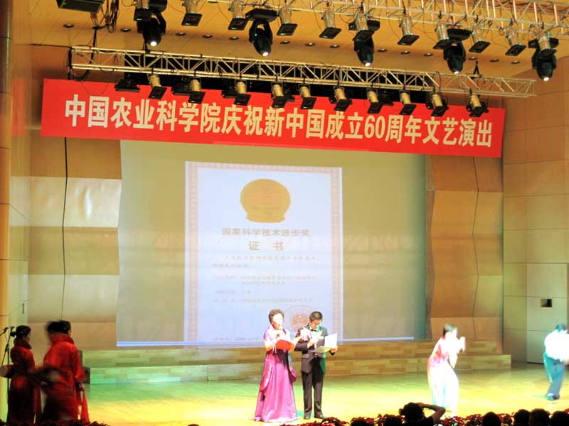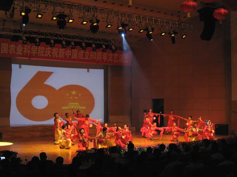 9月16日下午,由院直屬機(jī)關(guān)黨委主辦、院工會(huì)承辦的“中國(guó)農(nóng)業(yè)科學(xué)院慶祝新中國(guó)成立60周年文藝演出”,伴隨著歡慶的鑼鼓、優(yōu)美的樂曲和歡快的舞蹈拉開了的帷幕。 院領(lǐng)導(dǎo)、京區(qū)各單位黨政領(lǐng)導(dǎo)班子成員、部分在職職工和離退休人員1000多人參加了演出活動(dòng)。