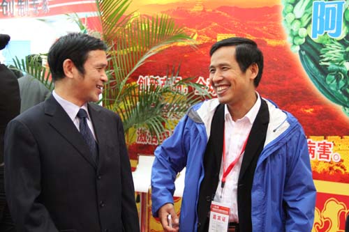 22日上午,中國農(nóng)科院植保所副所長邱德文博士來到我公司展位參觀指導(dǎo),客戶蜂擁而至,詳細詢問由邱博士領(lǐng)軍研發(fā)的植物免疫誘抗劑、蛋白質(zhì)生物農(nóng)藥“阿泰靈”的防治機理及應(yīng)用技術(shù)等,邱博士一一耐心解答。隨后,邱博士在中保集團常務(wù)副總經(jīng)理陳昶研究員的陪同下參觀了整個展廳,并親切詢問了在場工作人員的執(zhí)展情況,對中保集團的全面宣傳、細節(jié)策劃和產(chǎn)銷業(yè)績給與極大肯定。