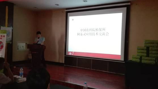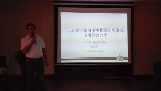 技術(shù)推廣老師梁增浩向與會(huì)的經(jīng)銷(xiāo)商介紹了“阿泰靈”作為世界第一個(gè)植物免疫蛋白質(zhì)生物農(nóng)藥的創(chuàng)制發(fā)展史,讓大家了解到“阿泰靈”發(fā)展的每一步艱辛歷程都凝聚了植保所和中保集團(tuán)科研人員、技術(shù)推廣團(tuán)隊(duì)的心血和汗水,所有的心甘情愿的付出都是為了實(shí)現(xiàn)給廣大百姓帶來(lái)一個(gè)真正的好產(chǎn)品,一個(gè)可以根本解決作物防效問(wèn)題的好農(nóng)藥。梁老師的真情講解,得到了與會(huì)人員理解和認(rèn)可的掌聲。