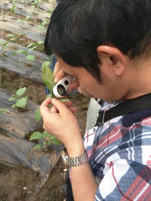 植保所專家現(xiàn)場觀摩阿泰靈示范基地果蔬生長情況