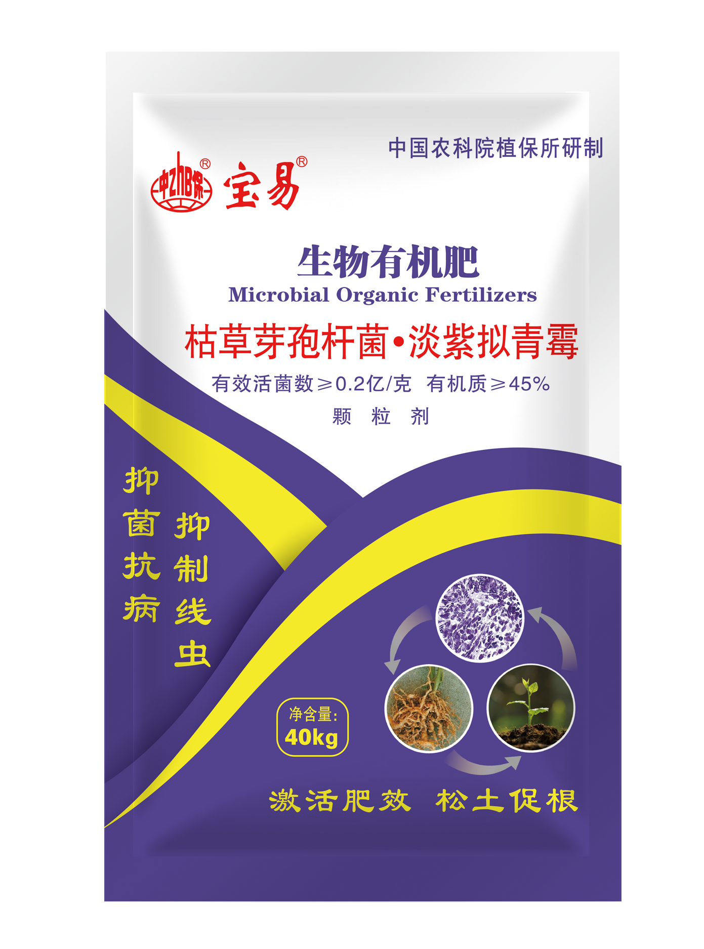 名稱:寶易 成分:0.2億/克枯草芽孢桿菌·淡紫擬青霉顆粒劑
