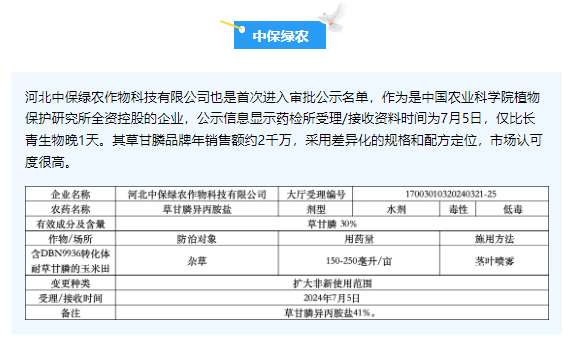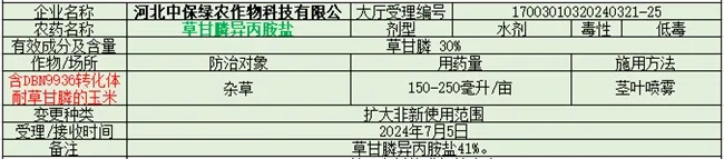 9月27日,2024年第10批擬批準登記農藥產品公示,也是我國生物育種第七批的登記公示。在擬批準登記變更農藥產品名單中,可看到生物育種草甘膦 ...全文分類[ 新聞中心 ] 2024-10-10